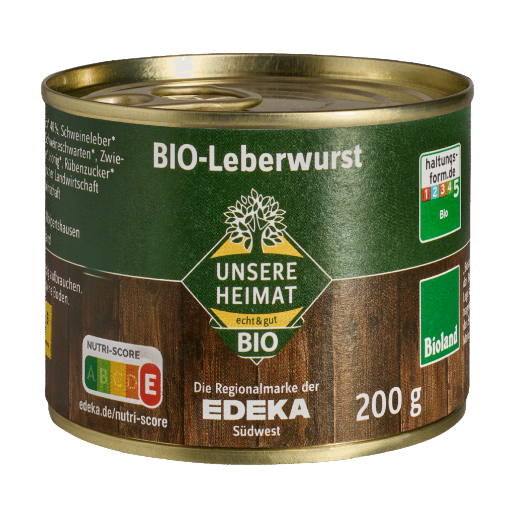 Die Wurstkonserven von „Unsere Heimat – echt & gut“ dürfen bei einem deftigen Vesper nicht fehlen. Unsere Sorten Lyoner, Bratwurst, Leberwurst, Schinkenwurst und Bierwurst sind allesamt Bio-zertifiziert von Naturland.