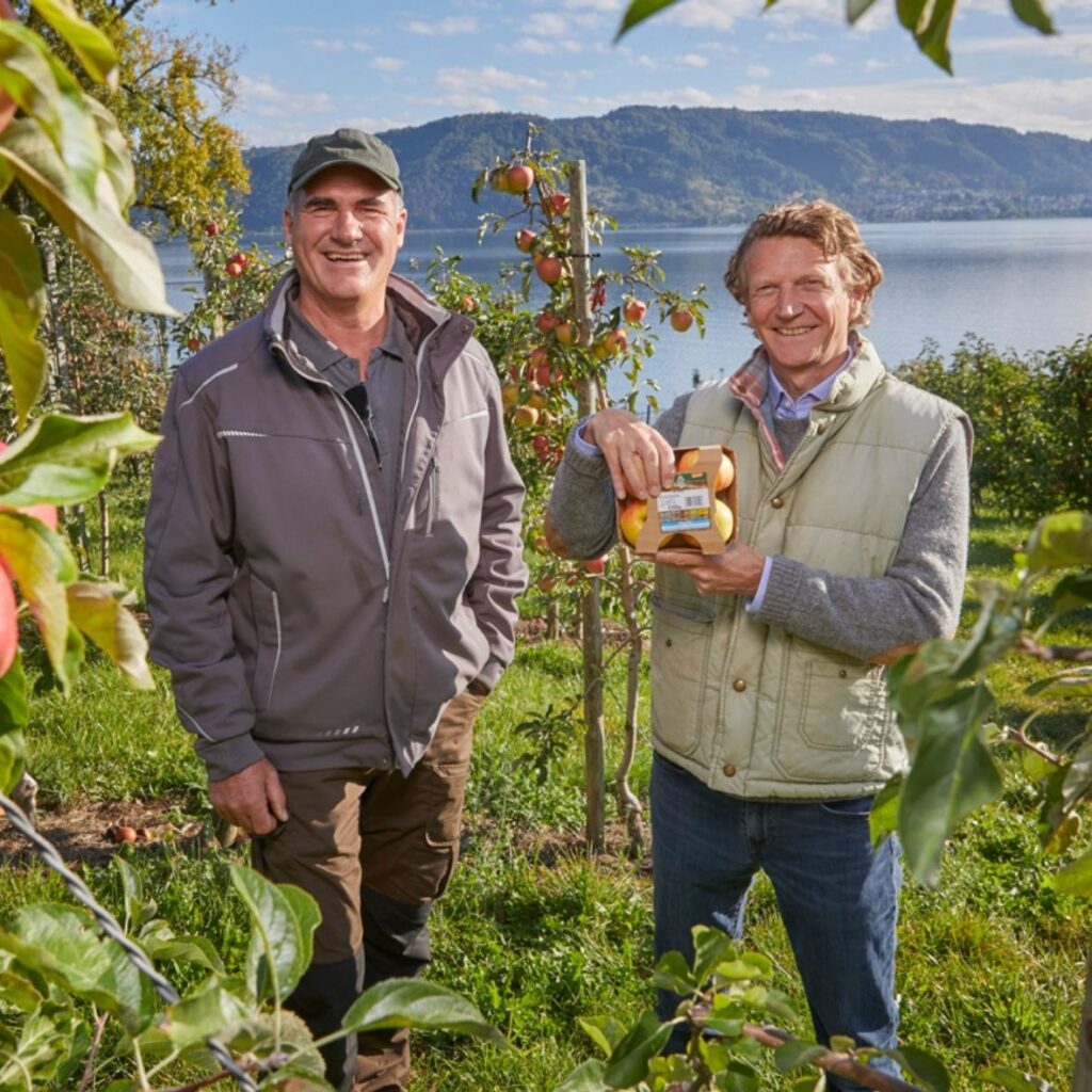 Auf insgesamt 60 Hektar baut die Gut Bodmann Ledergerber Obstbau GbR bestes Tafelobst in der Bodenseeregion an. Der Betrieb entstand 2014 aus einer Fusionierung der beiden großen Obstbaubetriebe in Bodman im Landkreis Konstanz. Beide waren zuvor bereits in dritter Generation erfolgreich bewirtschaftet worden und schöpfen nun gemeinsam ihre Synergieeffekte voll aus. Der Obstbaubetrieb beschäftigt insgesamt fünf fest angestellte Mitarbeiterinnen und MItarbeiter und zur Erntesaison zusätzlich 50 bis 60 Saisonkräfte. Über die Erzeugerorganisation Bodenseeobst wird EDEKA Südwest bereits seit vielen Jahren mit Bio-Äpfeln aus der Region beliefert. Seit 2018 ist der Bodmaner Betrieb Mitglied im Demeter-Anbauverband und seine Äpfel werden als Demeter Bio-Äpfel unter der Regionalmarke „Unsere Heimat – echt & gut“ in den Märkten der EDEKA Südwest vermarktet.