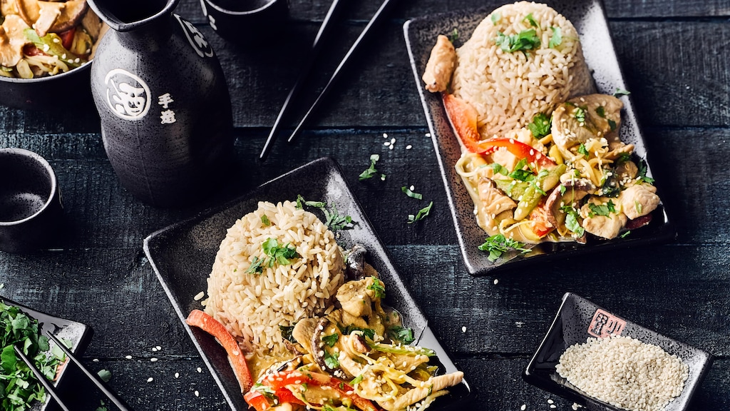 Ob gebratener Reis, Ente süßsauer, Sommerrollen oder Frühlingsrollen – asiatische Gerichte liegen voll im Trend. Wenngleich die Länderküche von Vietnam über China und Japan bis nach Thailand stark variiert, hat sie doch eines gemeinsam: Sie zeichnet sich durch ihre leichten Soßen, reichlich knackfrisches Gemüse und eine würzige Schärfe aus. Vor allem in China und Südasien werden die Speisen häufig schonend im Wok angebraten, beziehungsweise gegart, wodurch Vitamine, Mineralien und die Farbe des Gemüses weitgehend erhalten bleiben. Als Eiweißkomponente dienen Fisch und Meeresfrüchte, mageres Fleisch oder Tofu. Zusammen mit Kohlenhydraten in Form von Nudeln oder Reis entstehen so Mahlzeiten, die perfekt ausbalanciert sind – wie unser Asia-Pfannen-Rezept für Kokoshähnchen mit Wok-Gemüse unterstreicht. Auch andere Geflügelsorten harmonieren wunderbar mit Zutaten wie Frühlingszwiebeln, Paprika und den typischen Gewürzen. So sind unsere Putenstreifen asiatisch ebenso ein Genuss.