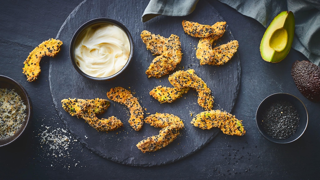 Knusprig zubereitet schmeckt (fast) alles besser: Sind auch Sie dieser Meinung, ist unser Rezept für würzig panierte Avocado Fries genau richtig! Innen bleiben die Früchte cremig weich, außen werden sie im Backofen wunderbar kross. Der Knuspermantel besteht dabei aus einer Mischung aus Semmelbröseln, Sesam und Parmesan – der Käse passt mit seinem kräftigen Aroma hervorragend zu Gemüse und veredelt nicht nur die Panade für unsere Avocado-Sticks, sondern auch die für unsere Zucchini-Pommes. Schwarzer Sesam ist die zweite wichtige Zutat für den Gemüsemantel: Die Körnchen sorgen für zusätzlichen Biss und Würze. Natürlich können Sie auch eine einfachere Mischung wählen, um Avocado zu panieren. Speisestärke genügt schon, um die Frucht knusprig zu backen. Wie unsere selbstgemachten Pommes Frites werden die Sticks einfach darin gewälzt – auf diese Weise lassen sich auch viele andere Arten von krossen Fritten aus Gemüse zubereiten, etwa aus Süßkartoffel, Aubergine, Karotten, Kohlrabi, Topinambur oder Rote Bete.
