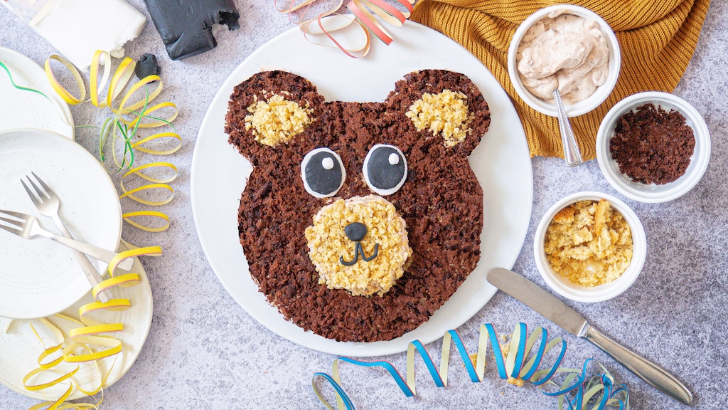 Trotz der relativ einfachen Zubereitung wird unser Bärenkuchen sicher für Begeisterung beim Nachwuchs sorgen. Kleine Architekten finden an unserem Baustellen-Kuchen Gefallen, der Sie handwerklich ebenfalls nicht vor allzu große Herausforderungen stellt. Die Deko macht’s – und kann aus fertigen Süßigkeiten bestehen. Beim Piratenschiff-Kuchen etwa besteht sie aus Schokoküssen, Waffelröllchen, Schokolinsen, Keksen und Lakritzschnecken. Auch beim Bärenkuchen können Sie kreativ werden und sich andere Dekore überlegen. Holen Sie hier gerne Ihre Kinder ins Boot: Am Verzieren haben sie bestimmt Spaß.