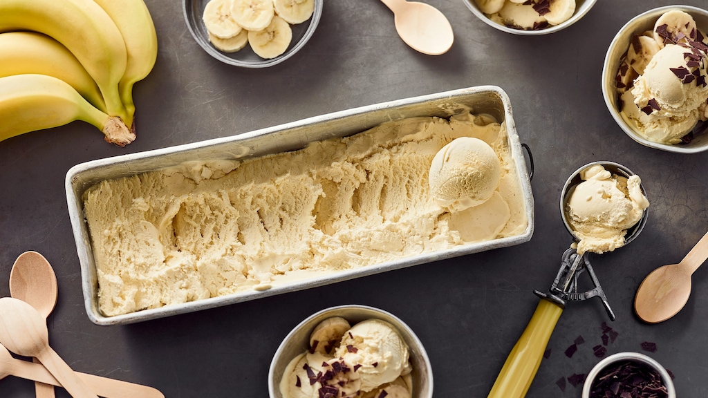 Möchten Sie Bananeneis ohne Eismaschine zubereiten, bietet sich statt der Variante mit Sahne auch eine Nicecream an. Dafür pürieren Sie die gefrorenen Bananenscheiben einfach mit etwas Milch oder Pflanzendrink in einem Hochleistungsmixer, bis die Masse cremig ist – fertig. Das 5-Minuten-Eis lässt sich mit Toppings wie Früchten, Nüssen, Kakaonibs, Minzblättern, Nussmusen oder Schokosoßen verfeinern. Sie können auch etwas Kakaopulver an die Rührmasse geben und so ein schnelles Bananen-Schokoladen-Eis kreieren. Wie bei unserem Bananeneis-Rezept braucht auch diese Variante nicht zusätzlich gesüßt zu werden. Da sie ohne Sahne auskommt, ist eine Nicecream der leichtere Genuss – und wie unser Bananeneis-Rezept ideal, um überreife Bananen zu verwerten. In puncto Cremigkeit kommt sie aber nicht an das Bananeneis heran. Fans dieser Konsistenz empfehlen wir auch unsere Rezepte für Kaffee-Eis, sahniger Genuss mit Koffein-Kick, oder für Limetten-Joghurt-Eis, ein fruchtig-frischer Genuss an heißen Tagen! In unserem Rezept für Bananen-Tiramisu vereinen Sie die Aromen von Kaffee und Banane.