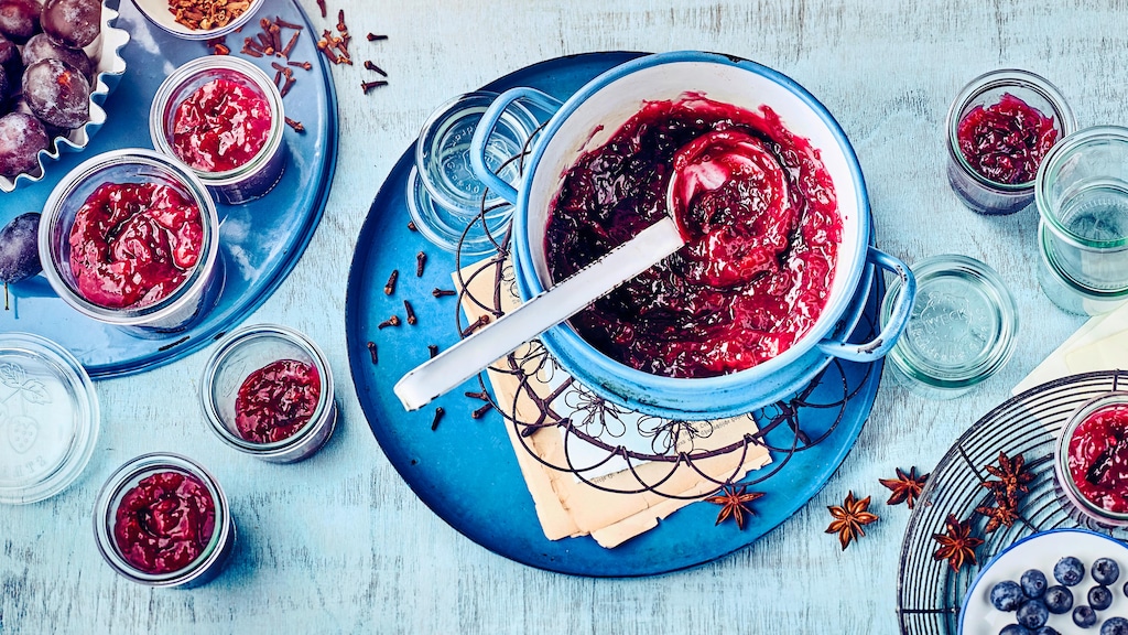 Probieren Sie das Rezept für unsere Beerentraum-Konfitüre aus und genießen Sie selbst gekochten Aufstrich aus Heidelbeeren, Pflaumen, Ingwer und Zimt!