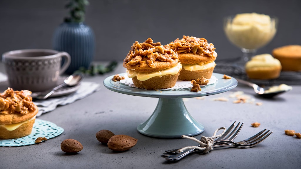Sie lieben Gebäck mit cremigen Füllungen? Dann kommen Sie um unser Bienenstich-Rezept mit leckerer Vanillecreme und Mandelblättchen nicht herum! Der Clou: Der Kuchenklassiker kommt diesmal nicht vom Blech, sondern als Cupcake daher.