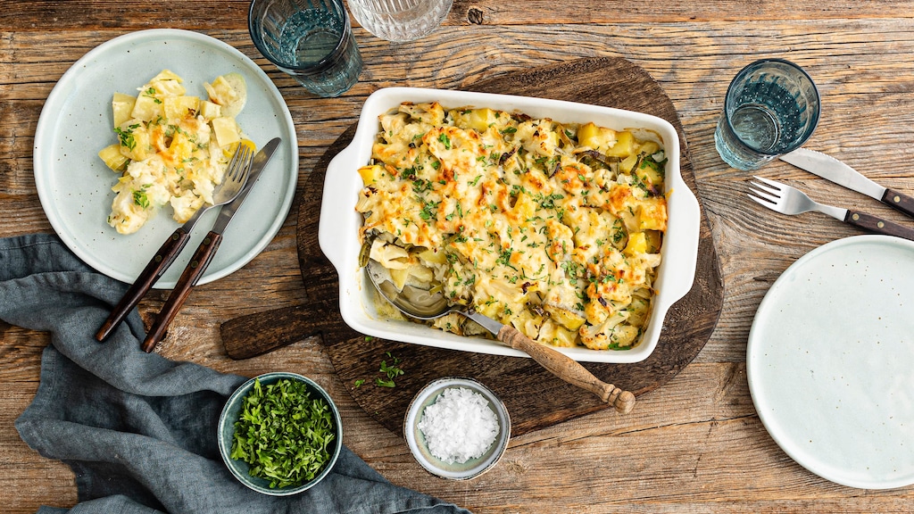 Knackige Blumenkohlröschen mit würzigem Lauch und Kartoffeln zu einem appetitlichen Blumenkohlauflauf gebacken. Eine gute Basis, die Sie zusätzlich mit Muskat verfeinern. So garantiert unser Rezept Genuss und macht satt.