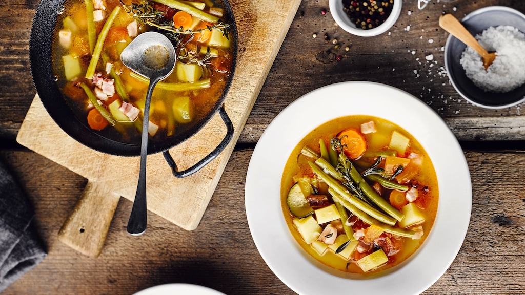 Einfach und doch so lecker: Eine Bohnensuppe ist Hausmannskost im besten Sinne. Verwenden Sie für den beliebten Eintopf grüne Bohnen und Speck oder kochen Sie das köstliche Gericht mit Gemüse, Fleisch oder Fisch.