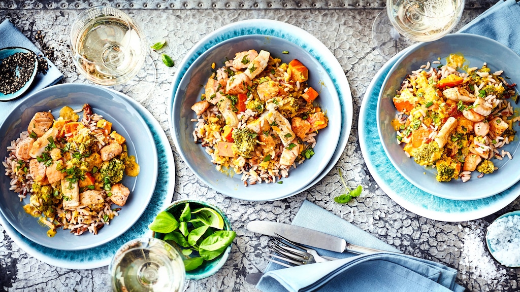 Reis nach Packungsanleitung zubereiten.