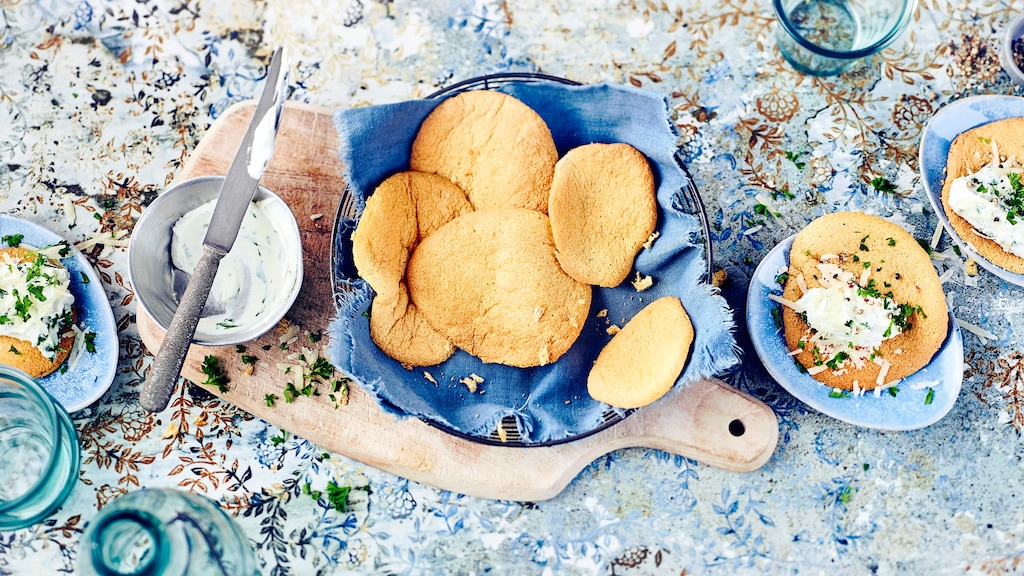 Eine gute Nachricht für Anhänger der Low-Carb-Bewegung und Menschen mit Glutenunverträglichkeit: der neue Foodtrend Cloud Bread. Der Name ist bei diesem luftigen Fladenbrot wirklich Programm. Fluffig und leicht wie eine Wolke, kohlenhydratarm und glutenfrei klingt das Wolkenbrot fast zu schön um wahr zu sein. Aber so ist es tatsächlich: Das Fladenbrot wird ganz ohne Mehl gebacken und bekommt seine fluffige Konsistenz durch Eischnee und Frischkäse. Je nachdem wie Sie Ihr Cloud Bread würzen, können Sie das fertige Gebäck mit süßen oder herzhaften Aufstrichen genießen. Natürlich schmeckt dieses Brot fast ohne Kohlenhydrate auch einfach pur. Probieren können Sie es außerdem als Bun-Alternative für unseren Low-Carb-Burger.