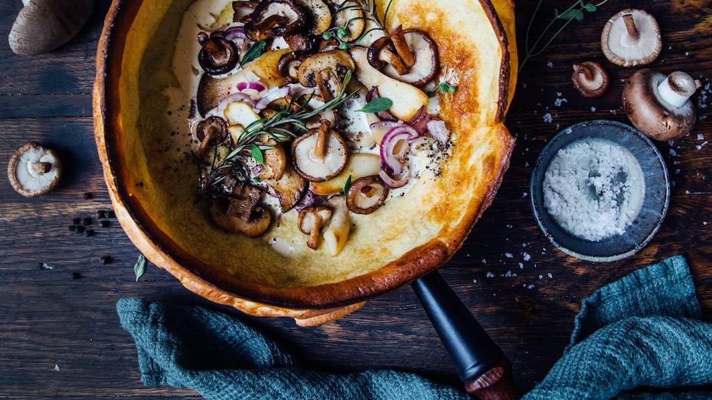 Was hat ein Pfannkuchen, der im Backofen schön hochgeht und so luftig und locker wird, mit den Niederlanden zu tun? Die Frage, wie das Dutch Baby zu seinem Namen gekommen ist, ist nicht ganz geklärt. Sicher ist: Seit die New York Times 1966 über die luftige Version des Pancakes berichtet hat, ist das Dutch Baby ein Klassiker zum Frühstück in den USA geworden. Ursprünglich soll das Rezept allerdings aus Deutschland gekommen sein. Aus „deutsch“ wurde dann irgendwann „dutch“, obwohl der Pfannkuchen gar nichts mit Holland oder den Niederlanden zu tun hat. Wirklich wichtig ist allerdings der Name ohnehin nicht. Viel entscheidender ist der Geschmack! Unser Dutch-Baby-Rezept sorgt auf jeden Fall für wundervolle Genussmomente, ganz egal, wo der Name des Gerichts herkommt. Unser Dutch-Baby-Rezept ist dabei allerdings weniger als Frühstück gedacht, sondern als herzhafte Variante mit einem leckeren Pilzragout durchaus als Hauptmahlzeit geeignet. Reichen Sie dazu ein köstliches Zupfbrot aus dem Dutch Oven.