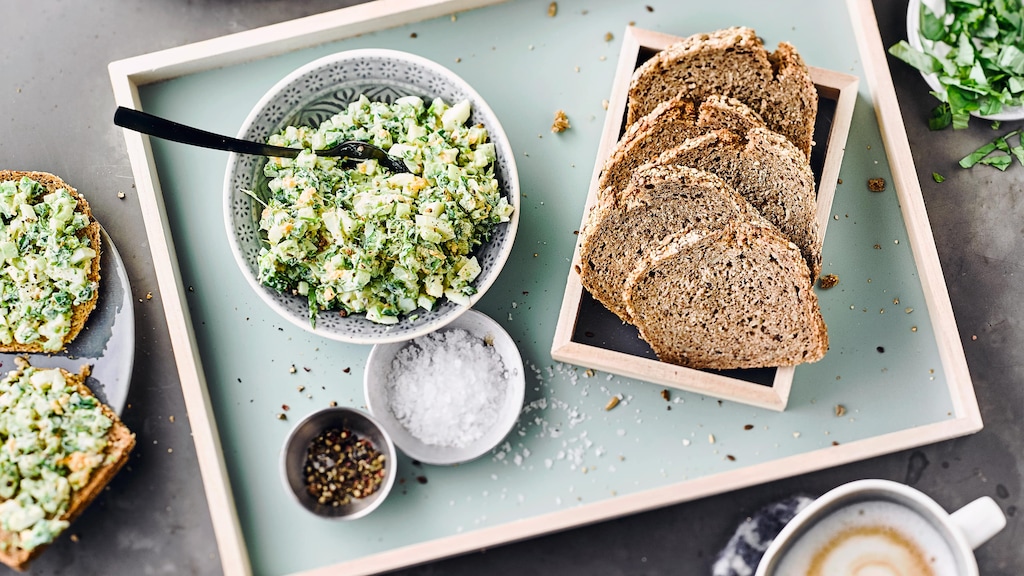 Ob gekocht, gebraten, gebacken oder eingelegt – sie kommen in den verschiedensten Gerichten zur Geltung. Zum Frühstück gegessen bilden sie eine gute Grundlage für den Tag und zwischendurch – auf einem Brot mit etwas Butter, Salz und Pfeffer oder Schnittlauch – sind sie der ideale Energielieferant. Reich an Proteinen, B-Vitaminen sowie Vitamin A, Eisen und Zink liefern sie zusätzlich „gesunde“, ungesättigte Fettsäuren. Mit unserem Eieraufstrich-Rezept – auch klassischer Eiersalat eignet sich hervorragend als Brotaufstrich – bereiten Sie eine Mahlzeit zu, die ebenso ausgewogen wie schmackhaft ist, denn die Kohlenhydrate aus dem Roggenvollkornbrot, das Eiweiß aus dem Magerquark und den gekochten Eiern und die Vitamine und Mineralstoffe aus den frischen Kräutern und der fein geschnittenen Gurke sind wichtige Bestandteile unserer Ernährungspyramide. Wie Ihnen die gekochten Eier gelingen, erklären wir Ihnen hier.