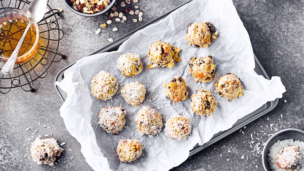 Neben Aprikosen können Sie schnell und einfach die kleine Zwischenmahlzeit auch aus Trockenfrüchten wie Datteln, Aprikosen und Feigen oder getrockneter Mango oder Pflaumen – wie bei unserem Rezept für Energy-Balls – zubereiten. Mögen Sie Zitrusfrüchte lieber, sollten Sie unsere Energiekugeln mit Orangen und Haferflocken probieren: Die leichte Säure der Frucht sorgt für einen angenehm frischen Geschmack der Powerbällchen.