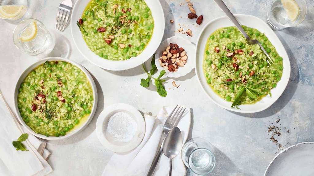 Egal ob als Mittag- oder Abendessen unser leckeres veganes Erbsenrisotto ist leicht und schnell hergestellt und bekommt eine besondere Würze durch die Rauchmandeln. Entdecken Sie mit unserem köstliches Rezept eine ganz neue Risotto Variante.