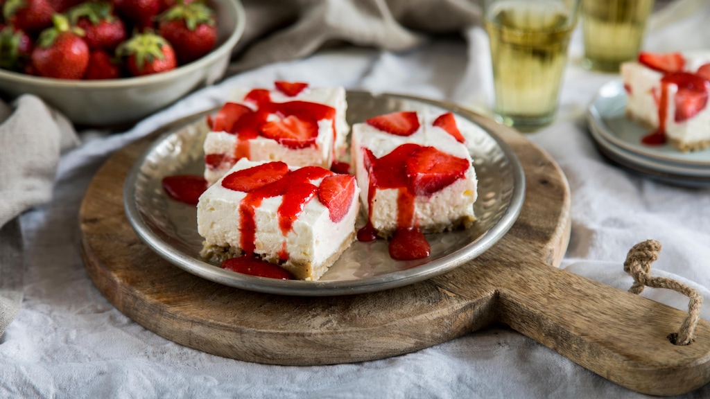 Für unsere Erdbeer-Bars müssen Sie nicht einmal den Backofen anschmeißen – der leckere Knusperboden wird ganz einfach mit der Joghurt-Frischkäse-Creme bestrichen und anschließend kaltgestellt. Herrlich fruchtig und erfrischend – probieren Sie es aus!