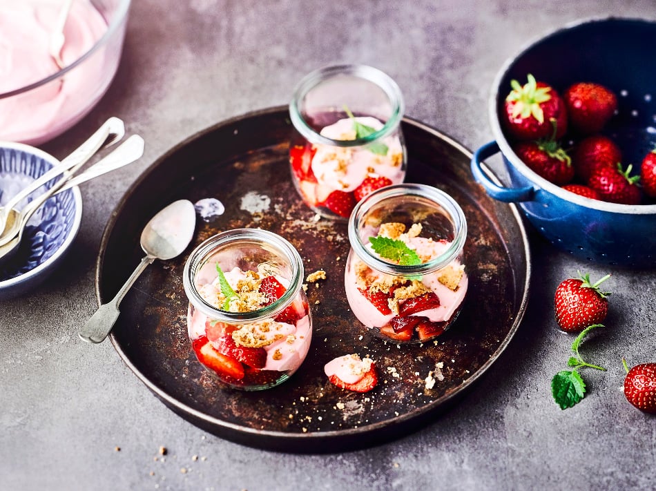 Unsere Erdbeercreme vereint intensive Süße reifer Erdbeeren mit cremigem Joghurt aus Schafsmilch und dem Aroma feiner Vanille – ein unwiderstehlicher Genuss. In nur 12 Minuten zaubern Sie mit unserem Rezept ein fruchtiges Dessert.
