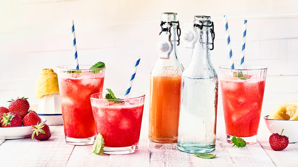 Herrlich fruchtig und erfrischend: Probieren Sie unsere Limonade aus frischen Erdbeeren, Ingwer und Zitrone – in nur 8 Minuten ist sie servierfertig!