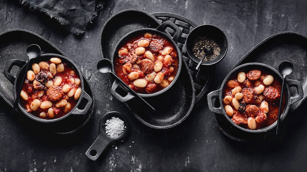 Für die lange Kochzeit dieses Eintopfgerichts werden Sie mit einem intensiven und herzhaften Geschmack belohnt, der durch die Chorizo besonders unterstützt wird. Die klassische Zubereitung sieht zusätzlich Schweinefleisch aus dem Bauch oder der Haxe (oder was immer dem Koch gerade vom Schwein in die Hände fällt) sowie die spanische Blutwurst Morcilla vor. Diese Zutaten finden Sie auch in unserem Fabada Asturiana-Rezept. Servieren Sie den Eintopf ganz simpel mit frischem Baguette – mehr braucht das Gericht nicht als Beilage.