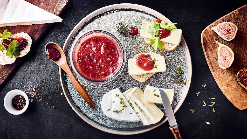 Unser leckerer Feigensenf ist ganz einfach herzustellen und Sie brauchen nur wenige Zutaten: Frische Feigen, Rotwein und Portwein sorgen für das feine Aroma und ein bisschen Senf gibt milde Schärfe. Probieren Sie es aus!