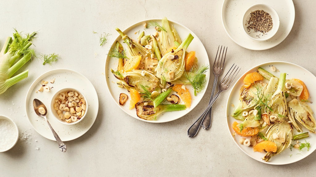 Kalorienarm und super aromatisch: Probieren Sie unser Rezept für leckeres Fenchel-Gemüse mit Orangenfilets und Haselnüssen – und genießen Sie es als Beilage oder vegetarisches Hauptgericht. Das Beste: Das Gericht haben Sie in nur 20 Minuten zubereitet!