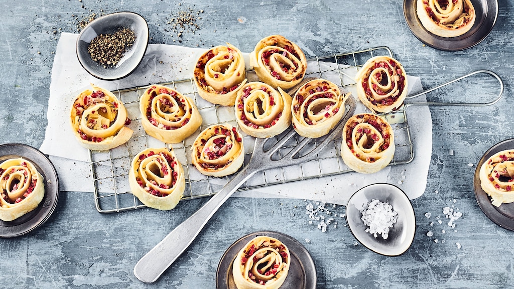 Konkurrenz für Pizza-Schnecken? Eher Partner. Mit unserem Rezept für Flammkuchen-Schnecken backen Sie die perfekte Ergänzung für Ihr Partybuffet und orientieren sich dank Speck, Zwiebeln und Crème fraîche zudem am Original.