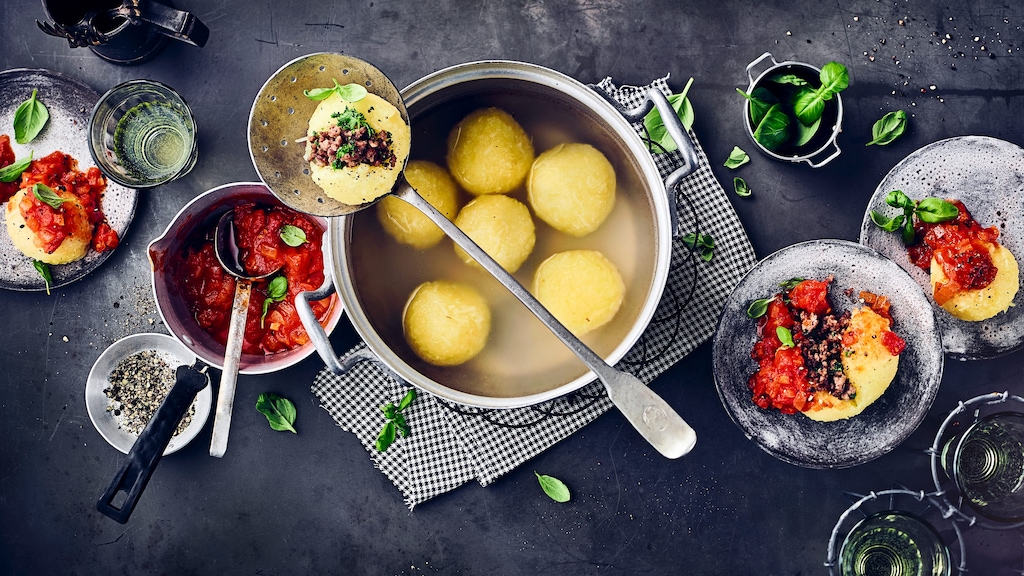 Ohne Fleisch, mit einer cremigen Pilzsauce sind die Knödel ein Gedicht und schmecken auch Vegetariern vorzüglich. Viele Rezepte stellen die köstlichen Kugeln in den Mittelpunkt und verwenden sie nicht nur als Beilage. Unser Spinat-Knödel-Auflauf sättigt und schmeckt ebenso als Hauptgericht wie Nuss-Knödel mit Salat oder Kartoffelklöße auf Sauerkraut oder Rahmwirsing. In Rezepten für gefüllte Knödel kommen Speck, Rote Bete oder Tomaten als Inhalte zum Einsatz. Probieren Sie auch unsere gefüllten Zwiebeln mit Hack – es lohnt sich!