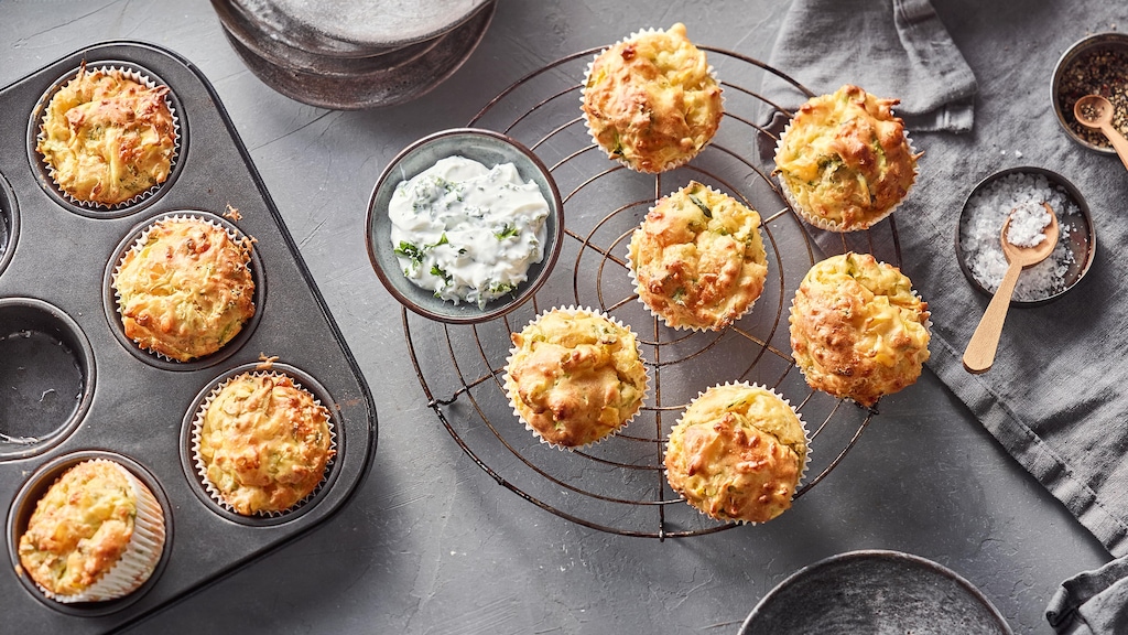 Muffins aus der Muffinform befreien und nach Belieben mit Kräuterquark servieren.
