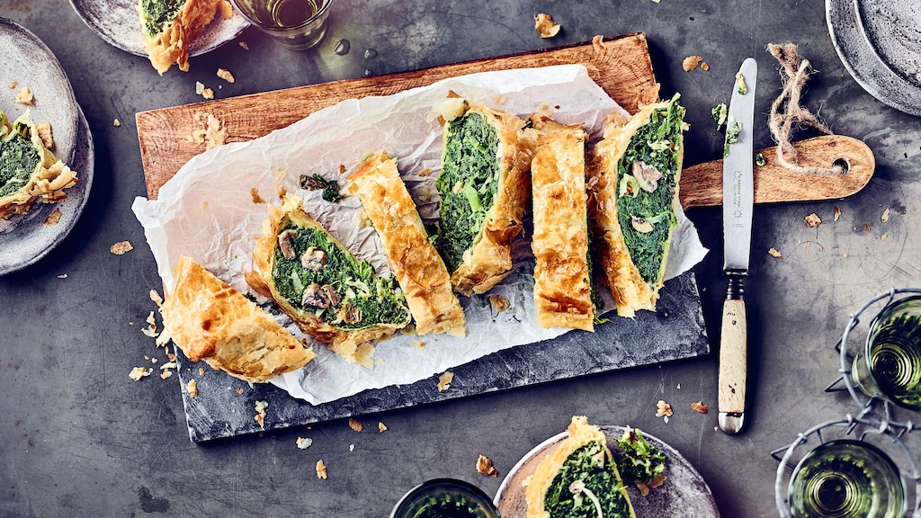 Man muss wirklich kein ausgesprochener Spinatfan sein, um dieses Gemüsestrudel-Rezept mit Blattgemüse in Blätterteig zu lieben: In Kombination mit aromatischem Ziegenkäse, leckeren Champignons und frischem Knoblauch präsentiert sich Spinat auf die besonders würzige Art.