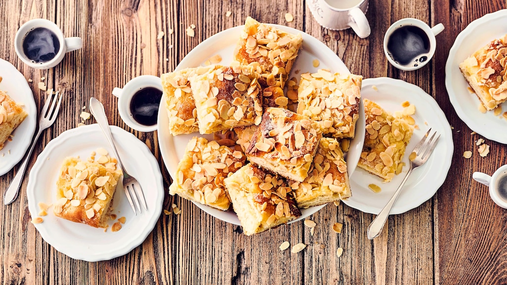 Genießen Sie fluffig leichten Butterkuchen mit feinen Mandelplättchen bestreut zum Kaffee und lassen Sie sich von dem herrlich süßen Hefegenuss verzaubern. Getränkt in Orangensaft und Mandellikör wird aus Ihrem Kuchen ein saftiger Genuss!
