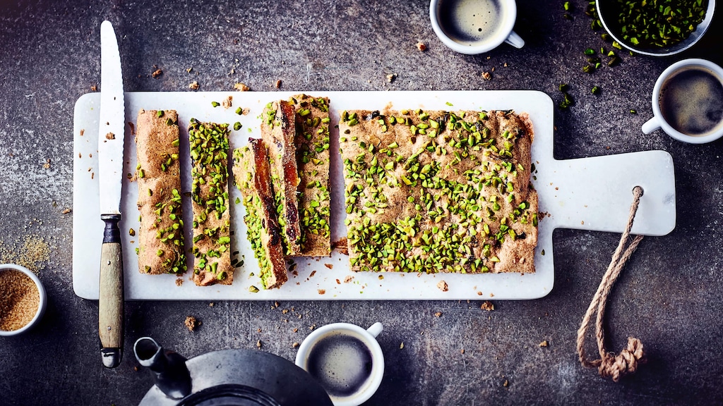Leckeres Gebäck zur Adventszeit: Probieren Sie unsere Gewürzschnitten mit getrockneten Aprikosen, Kirschen, Mandeln und ganzen Pistazien!