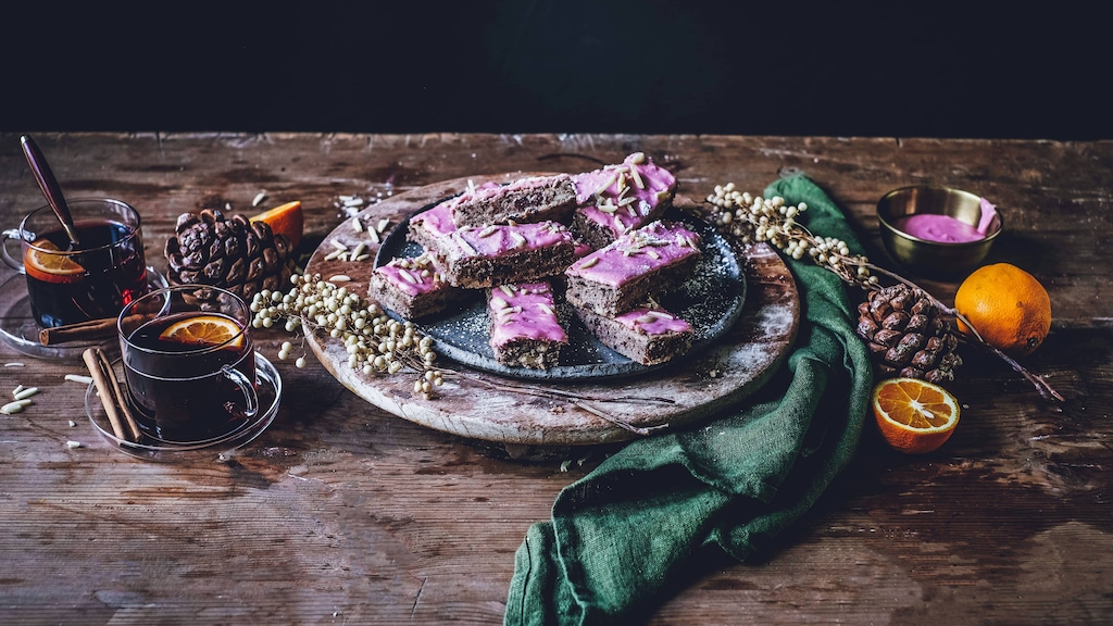 Glühwein schmeckt nicht nur als heißes Getränk in der Adventszeit. Auch beim Backen erweist sich der gewürzte Trunk als praktische Zutat, die Kuchen, Muffins, Tortenböden oder -füllungen ein winterliches Aroma verleiht. Ob als Glühweinkuchen oder in unserem Glühweinschnitten-Rezept: Schon der Duft des Gebäcks versetzt Sie in vorweihnachtliche Stimmung. Unsere Schoko-Glühweinschnitten gelingen dabei leicht und schnell. Sie werden aus einem einfachen Rührteig zubereitet und auf dem Blech gebacken. In die Glasur geben wir ebenfalls etwas Glühwein, was dem fertig dekorierten Kuchen nicht nur noch mehr Aroma, sondern auch eine hübsche Farbe verleiht. Für einen besonders fruchtigen Geschmack ersetzen Sie einen Teil des Weins durch Orangensaft – und zwar am besten Direktsaft. Naschen Kinder mit, können Sie das Rezept für die Glühweinschnitten auch mit einem alkoholfreien Glühwein backen.