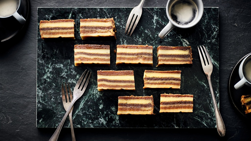 Goan Bebinca Cake gilt in Goa als Königin der Desserts. Insbesondere zu Weihnachten ist die Leckerei populär – und so untrennbar mit dem Fest verbunden, wie hierzulande klassische Kokosmakronen. Dabei hat das Gebäck eine interessante Geschichte vorzuweisen. So wurde der Kuchen angeblich von einer in Goa lebenden Nonne namens Bebiana zubereitet und hatte ursprünglich sieben Schichten. Die standen für die sieben Hügel von Lissabon und Velha Goa – die einstige Hauptstadt Goas, als dieses noch eine portugiesische Kolonie war. Heute variieren die Schichten der Goan Bebinca klassisch zwischen sieben und sechzehn. Bei der heimischen Zubereitung entscheidet allerdings Ihre persönliche Vorliebe und ein wenig auch die Motivation. Keine Sorge: Der Kuchen schmeckt mit wenigen Schichten genauso unwiderstehlich lecker. Ob viele Schichten oder wenige – stellen Sie immer sicher, dass jede Schicht gar ist, bevor Sie die nächste auftragen. Hier hilft die gute alte Probe mit einem Zahnstocher.