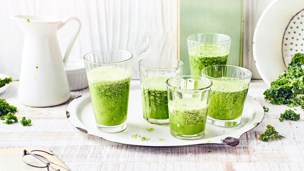 Tipp: Trinken Sie anfangs eher kleine Mengen, um Ihren Körper an die Verdauung der Ballaststoffe zu gewöhnen und Blähungen vorzubeugen. Sie können ruhig etwas mehr vom Grünkohl-Smoothie herstellen – die Getränke lassen sich im Kühlschrank problemlos einen Tag lang aufbewahren. Und wenn Sie einmal Ihren Grünkohl lieber traditionell deftig genießen möchten: Dafür empfehlen wir Ihnen unser klassisches Grünkohl-Rezept mit Kasseler!