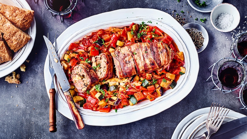 Probieren Sie unser Rezept für Hackbraten im Schinkenmantel aus und kombinieren Sie Käse mit Hackfleisch. Dazu servieren Sie Ratatouille. Es lohnt sich!