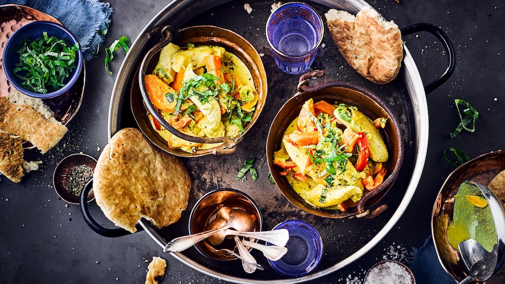Obwohl es regionale Unterschiede in puncto Schärfe und Zusammensetzung gibt, besteht ein Curry in seiner Urform entweder aus Fleisch – z. B. Hähnchenbrust – oder Fisch und Gemüse, das mit einer würzigen Soße angerichtet wird. Auch Früchte wie Ananas oder Mango finden vereinzelt Verwendung. Das Gericht wird traditionell, wie unser Hähnchencurry, mit Reis, Brot oder Nudeln serviert und eignet sich auch als außergewöhnliches Essen beim Grillen. Tipp: Grundsätzlich lassen sich Currys wunderbar in größeren Mengen vorbereiten, um sie danach einzufrieren. Bedenken Sie nur, dass das Gemüse dabei an Knackigkeit verliert. Weitere Inspiration liefern unsere Hähnchen-Curry-Rezepte. Welche Gerichte Sie neben Currys noch mit Kokosmilch kochen können, erfahren Sie mithilfe unserer Kokosmilch-Rezepte.