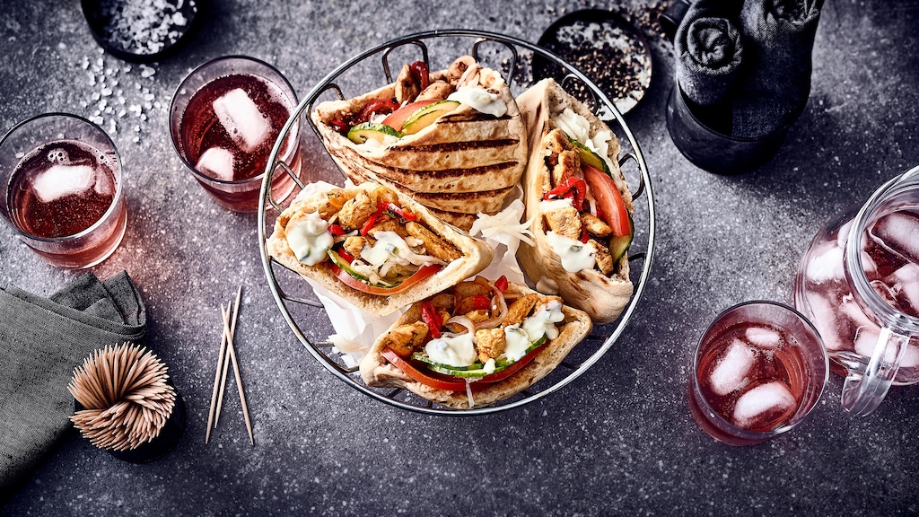 Das Hähnchengyros nach unserem Rezept schmeckt nicht nur superlecker, Sie haben es auch in nur einer halben Stunde zubereitet. Da lohnt sich das Selbermachen – viel schneller sind Sie auch nicht am griechischen Imbiss. Unser Hähnchengyros-Rezept ist als Pita gedacht – für eine Low-Carb-Variante können Sie das geschnetzelte Fleisch aber auch nur zusammen mit dem frischen Gemüse und Tzatziki auf einem Teller servieren. Erwarten Sie Gäste und planen einen griechischen Abend, bereiten Sie parallel mehrere Fleischsorten mit der Würzmischung aus unserem Rezept zu – und stellen Sie schon mal die Flasche Ouzo kalt! Weitere Inspiration liefern unsere Gyros-Rezepte – oder Sie probieren einmal unsere aromatische Gyrossuppe oder das Traditionsgericht Souvlaki-Pita.