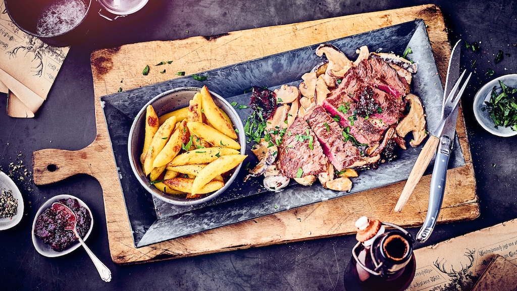 Perfekt für den besonderen Anlass: Unser Rezept hilft Ihnen bei der Zubereitung von zarten Hirschsteaks mit einer Beilage aus Pilzen, Birne & Preiselbeeren.