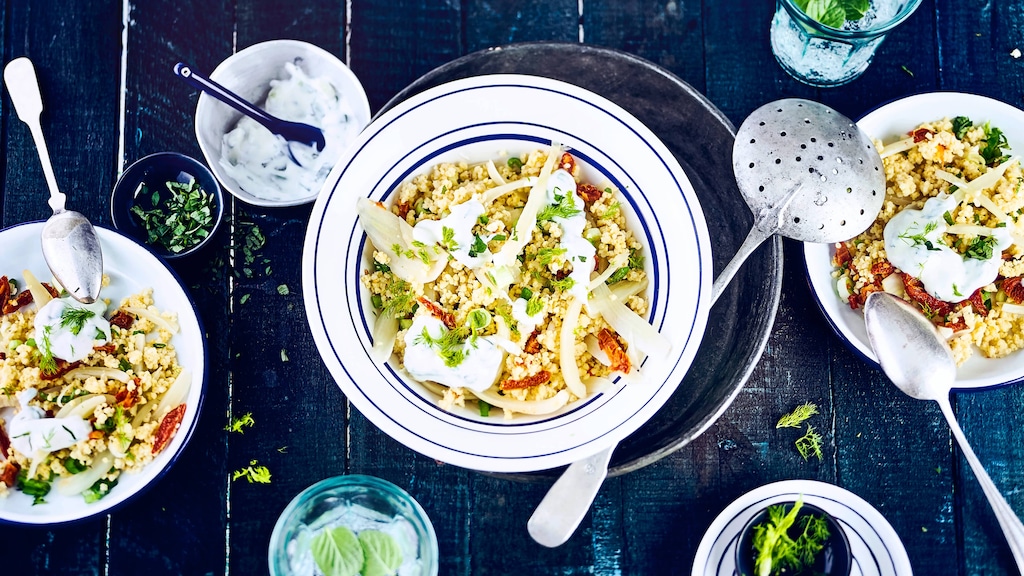 Hirse in kochende Gemüsebrühe geben, aufkochen und bei mittlerer Hitze zugedeckt zunächst 15 Minuten garen. Anschließend Fenchel und getrocknete Tomaten dazu geben und weitere 10 Minuten garen.