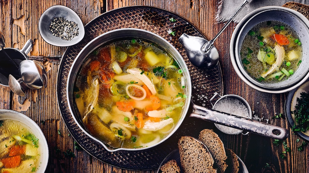 Gerade bei beliebten Suppen wie einer Rinderkraftbrühe oder der Hühnersuppe haben viele Familien eigene Rezepte, die sie von Generation zu Generation weitergeben. Die einen verwenden statt Suppengrün Gemüse wie Erbsen oder Spargel, die anderen genießen die Hühnerbrühe mit Eierstich oder essen sie mal ganz anders gewürzt. Dazu kommt natürlich eine ganz traditionelle Hühnersuppe nach Omas Art. Bei den Einlagen gibt es ebenfalls viele leckere Möglichkeiten, die auch vegetarische klare Suppen wie unsere Gemüsebrühe gut ergänzen. Nudeln rangieren in der Beliebtheitsskala sicher ganz oben, aber auch in Streifen geschnittene Pfannkuchen passen hervorragend. Probieren Sie auch einmal Nocken aus Buchweizenmehl, Grießklößchen, Gemüsemaultaschen oder Reis als Einlage – oder Sie kochen einfach unsere Buchstabensuppe oder eine aromatische Erbsensuppe. Eine kulinarische Reise Richtung Südostasien ist ebenfalls möglich. Dafür halten Sie sich einfach an unser Tom-Kha-Gai-Rezept, mit dem Sie eine thailändische Hühnersuppe selber kochen. Tipps: Essenziell ist natürlich das Suppenhuhn. Dabei handelt es sich um ein 12 bis 15 Monate altes Legehuhn. Das besitzt zwar weniger Fleisch, dafür einen höheren Fettanteil als ein Masthuhn, was wiederum den Geschmack der Suppe intensiviert. Alles Wissenswerte rund um das Suppenhuhn erklärt Ihnen unser EDEKA-Experte Max Ehmke.