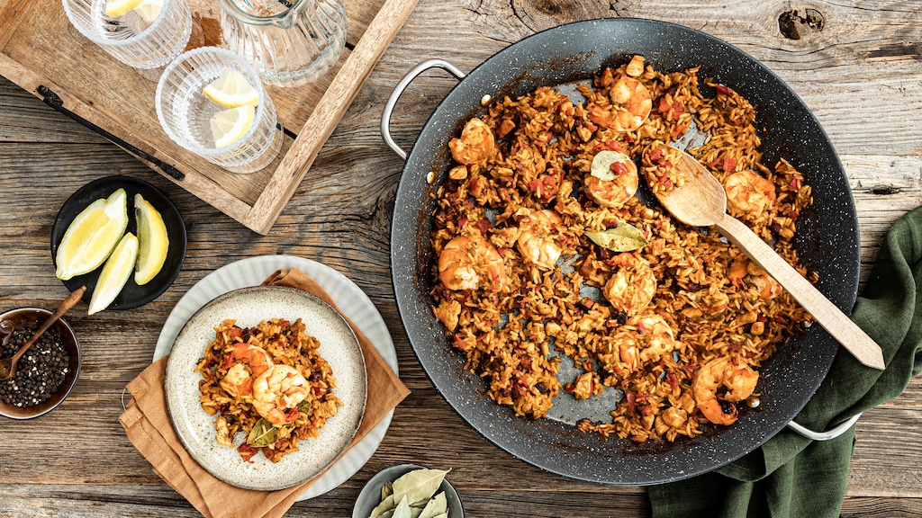 Unser Jambalaya-Rezept ist fester Bestandteil der kreolischen Küche: Der Klassiker aus Louisiana vermischt die Einflüsse Afrikas und Europas zu einem würzigen Reisgericht mit Gemüse, Chorizo, Garnelen und Huhn.