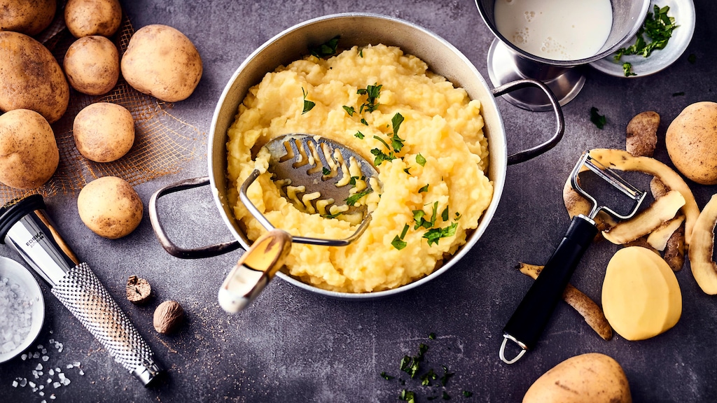 Es gibt Rezepte, die seit Generationen unverändert gut sind: Unser Kartoffelbrei-Rezept gehört dazu! Stampfen Sie das Püree wie zu Großmutters Zeiten mit Milch, Butter und Muskatnuss – schmeckt wie damals!