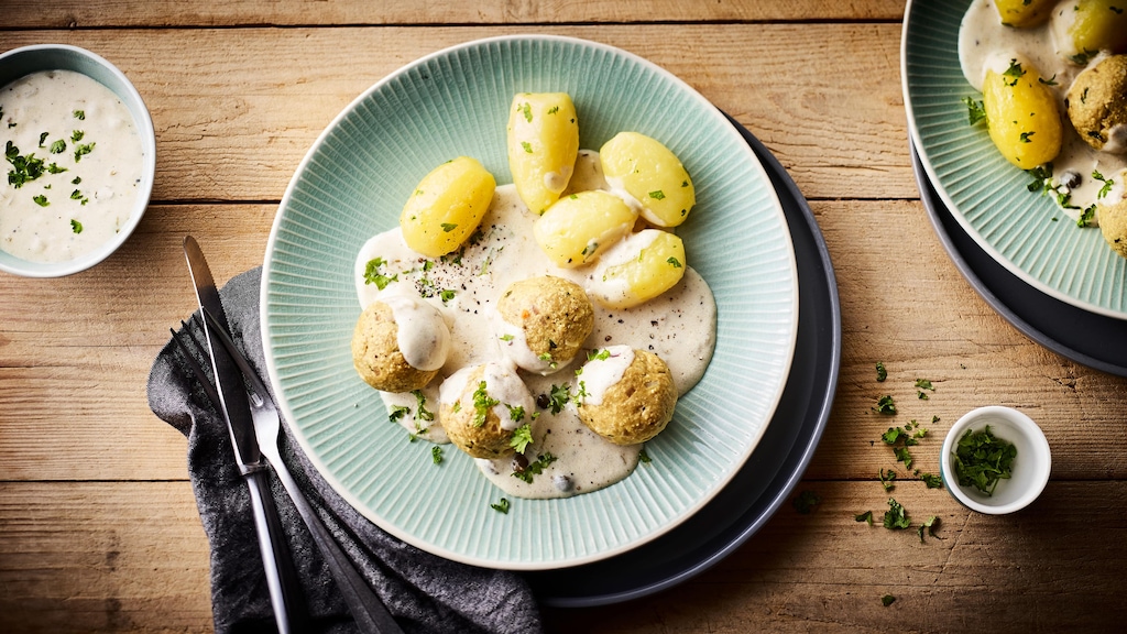 Mit veganem Hack sind Königsberger Klopse genauso lecker wie mit Fleisch. Glauben Sie nicht? Überzeugen Sie sich selbst und kochen Sie unser Rezept für die tierproduktfreie Variante der traditionellen Hausmannskost nach!