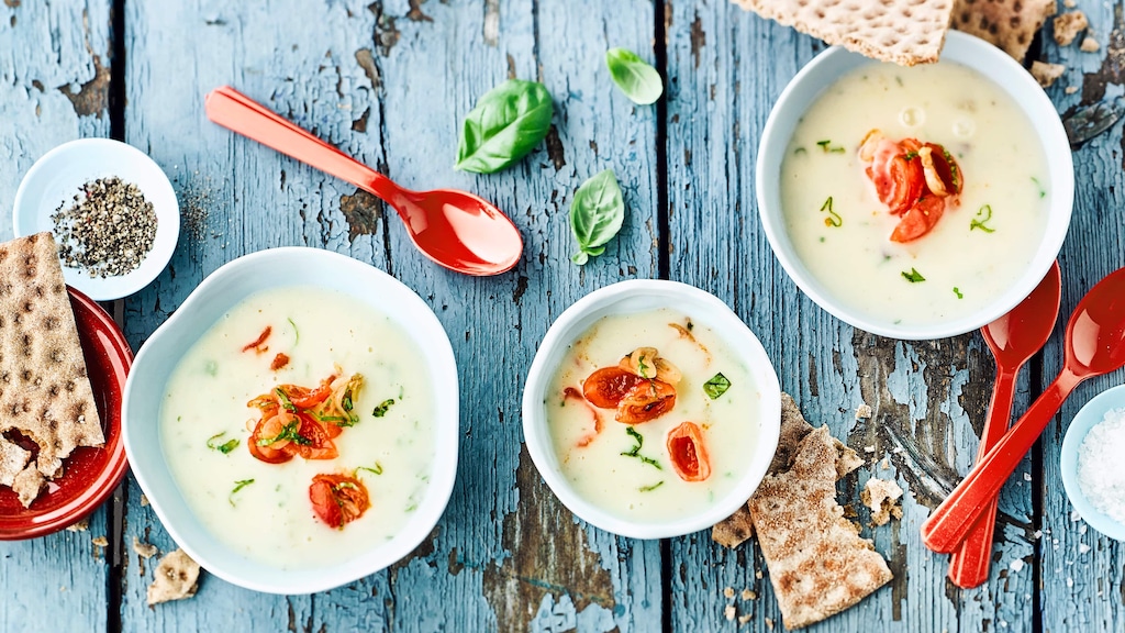 Suppen sind zu jeder Jahreszeit ein Genuss. Mit unserer Kohlrabisuppe können Sie daher nur eine gute Wahl treffen! Garniert mit geschmorten Tomaten ist sie für das Auge und den Gaumen ein besonderes Geschmackserlebnis.
