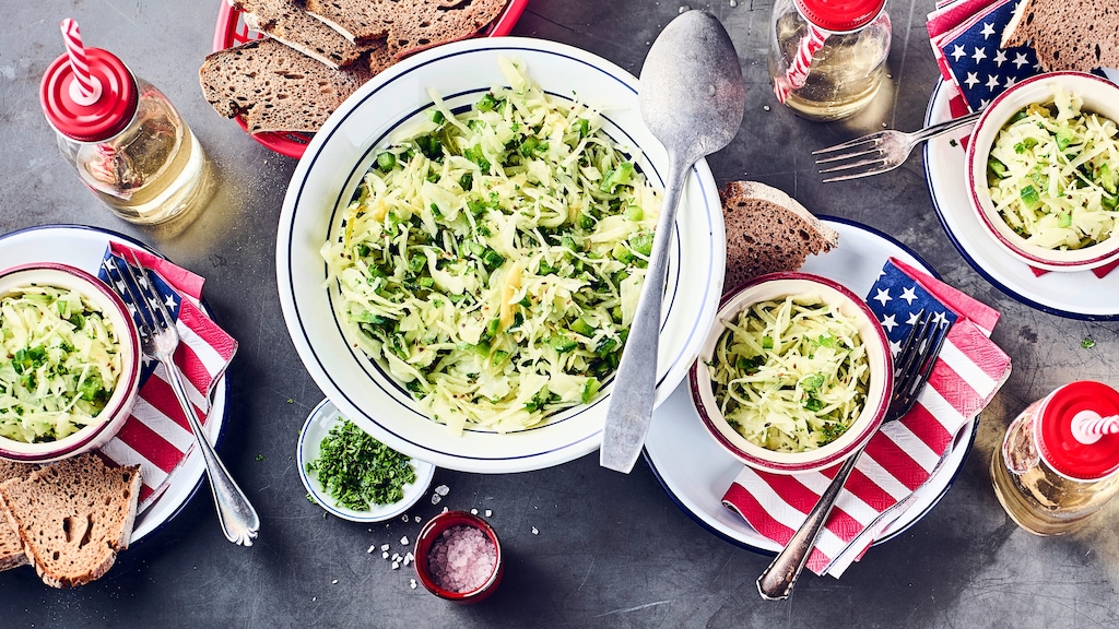 Weißkrautsalat mit grünen Paprikaschoten aus dem mittleren Westen der USA.