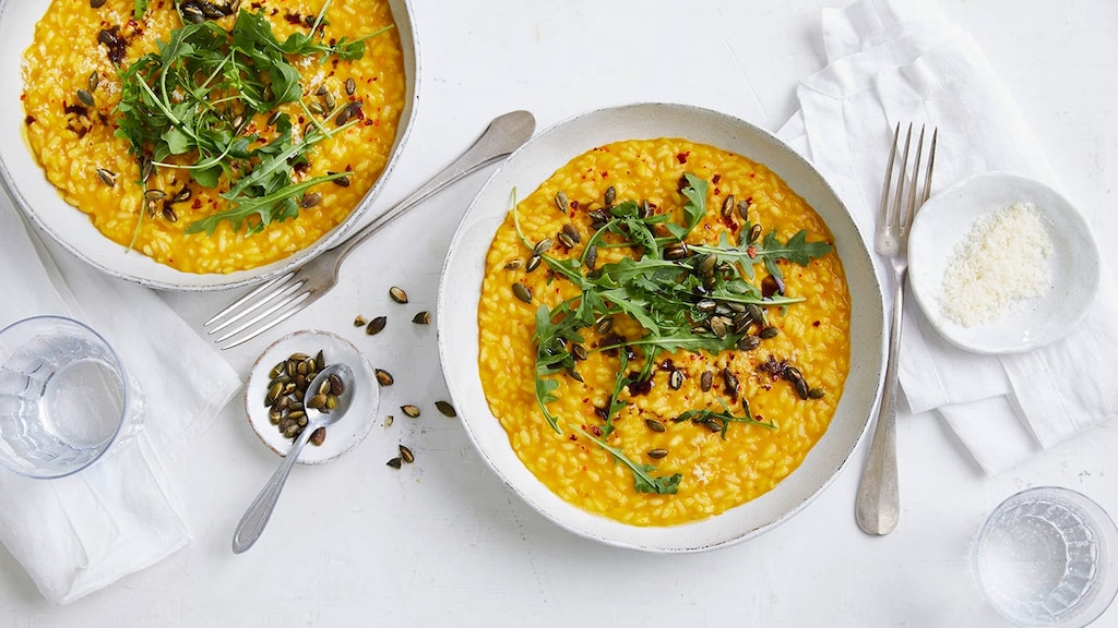 Herbst bedeutet Kürbis-Zeit. Perfekt dafür ist unser köstlich-cremiges Risotto mit Kürbis. Es ist schnell zubereitet und getoppt mit Kürbiskernen und Rauke wird die Abwandlung des italienischen Klassikers sowohl optisch als auch geschmacklich ein wahrer Genuss. Wir wünschen guten Appetit!