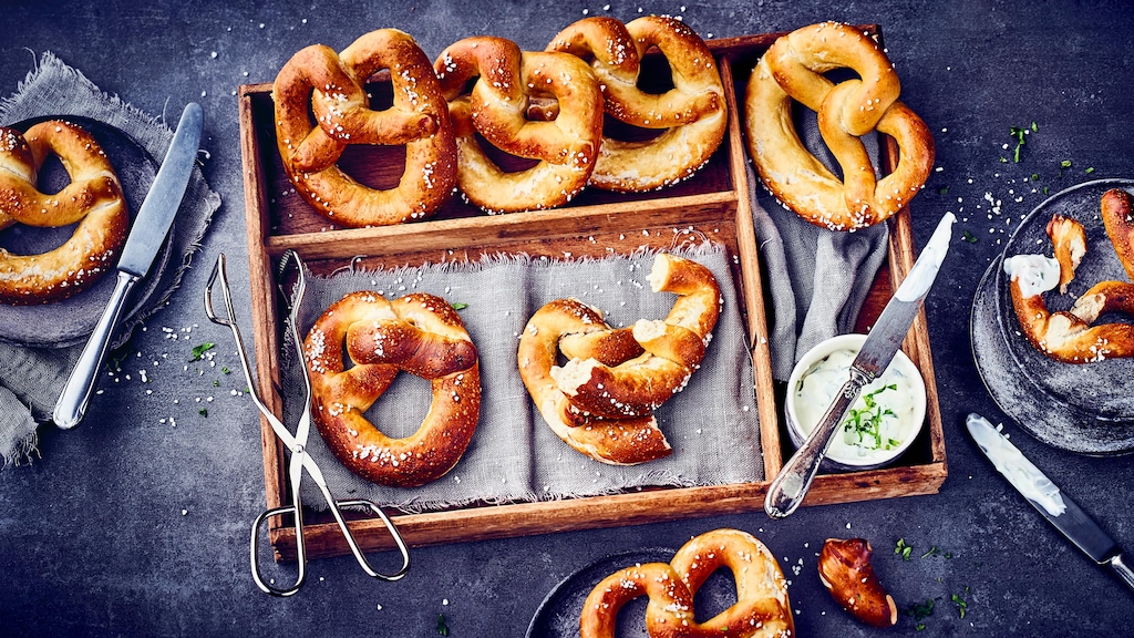 In Bayern und Baden-Württemberg gilt die Brezel tatsächlich als eine Art Grundnahrungsmittel: Kein Besuch im urigen Biergarten und kaum eine gemütliche Brotzeit kommt ohne das herzhafte Gebäck aus. Frisch und rösch: Mit unserem Laugenbrezeln-Rezept backen Sie diesen Klassiker ganz einfach zu Hause!