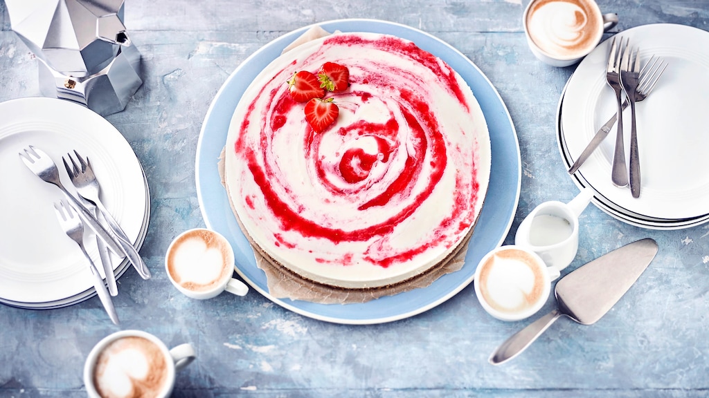 Nudeln, Reis, Kartoffeln, Brot und normale Brötchen sollten Sie in einer Low-Carb-Ernährung durch Fisch, Fleisch, Gemüse, Milchprodukte und Nüsse ersetzen. Mit ein wenig Wissen und guten Rezepten können Sie aber trotzdem fast alle Ihre Lieblingsgerichte essen. In unserer Sammlung von Low-Carb-Rezepten finden Sie sicher viele Gerichte, die Ihnen schmecken. Auch Kuchen und Torten gibt es als Low-Carb-Varianten. Unser Low-Carb-Torten-Rezept verwendet dabei proteinreichen Quark und Mascarpone und verzichtet auf kohlenhydratreiches Mehl und auf Zucker. Stattdessen backen Sie den Boden der Torte mit Mandelmehl und süßen ihn mit klein gehackten Datteln. Weitere Süße und frische Fruchtigkeit bekommt die Torte durch den Erdbeer-Swirl aus leckeren pürierten Erdbeeren.
