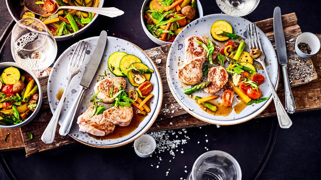 Zartes Spargelgemüse mit gebratenen Schweinemedaillons: Kochen Sie doch einmal für Ihre Gäste und verwöhnen Sie den Gaumen mit dieser Kombination!