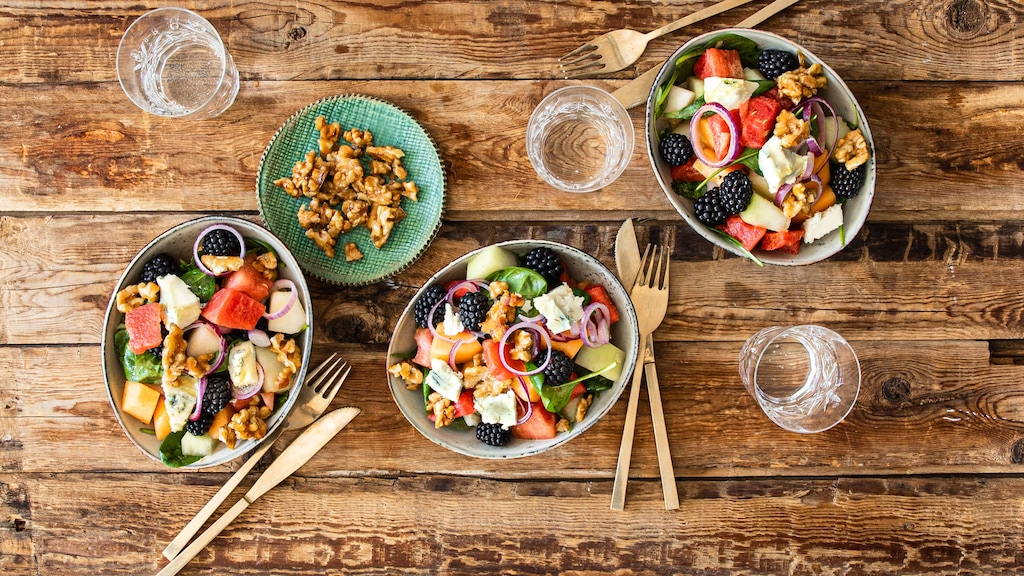 Salzig und süß – so schmeckt der Sommer. Nicht nur in der Kombination von Eiscreme auf meeres- oder sonnensalzigen Lippen, sondern auch, wenn Honigmelone auf Käse trifft – wie in unserem Rezept für Melonen-Salat. Der Klassiker unter den mediterranen Vorspeisen schmeckt auch als Salat zusammen mit Gorgonzola und etwas Basilikum wunderbar sommerlich. Sie können den Salat auch klassisch mit Serrano-Schinken oder Parmaschinken zubereiten. Als Zutaten eignen sich auch Blattsalat und Rucola, Mozarella und Feta – der Fantasie sind keine Grenzen gesetzt.