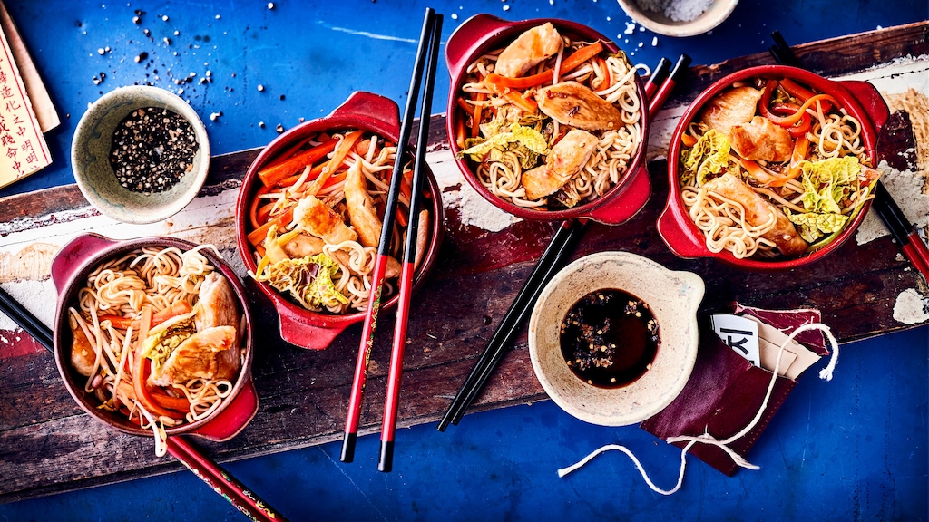 Fertig in 20 Minuten: Probieren Sie unser Rezept für gebratene Mie-Nudeln mit Chinakohl, Sojabohnensprossen und feinen Hähnchenbrust-Streifen aus!