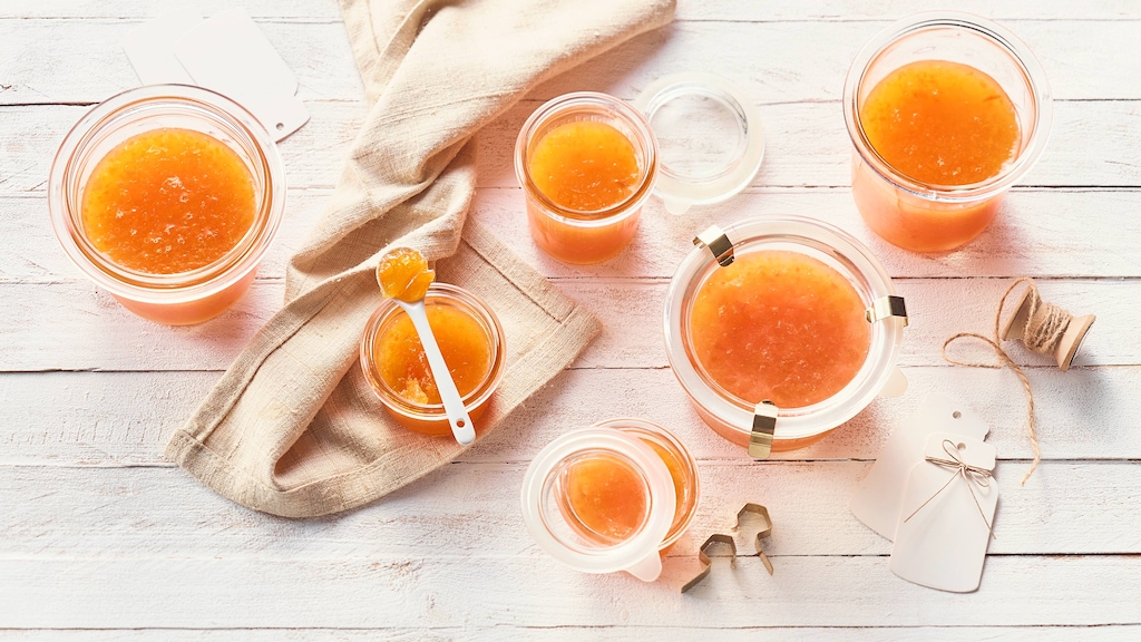 Ein ausgedehnter, gemütlicher Brunch gehört für viele zum Osterfest. Ein reichhaltig gedeckter Tisch mit allerlei Köstlichkeiten, die es sonst nicht gibt, macht die Feiertage kulinarisch zu etwas Besonderem. Feines Hefegebäck und kreative Marmeladen-Rezepte befriedigen den süßen Zahn. Machen Sie Marmelade zu Ostern einfach mal mit anderen Zutaten als sonst selber. Karotten, Apfel und Orange beispielsweise stehen das übrige Jahr eher nicht auf der Liste, sind aber eine tolle Kombination für einen fruchtigen und zugleich frischen Brotaufstrich. Für den Frischekick sorgen bei unserem Ostermarmelade-Rezept Zitronensaft und Ingwer – letzterer bildet mit seiner Schärfe einen optimalen Ausgleich zum süßen Gelierzucker. Ergebnis ist ein ausgewogener Gemüse-Frucht-Aufstrich, der auf Brötchen genauso gut schmeckt wie auf dem Hefezopf.