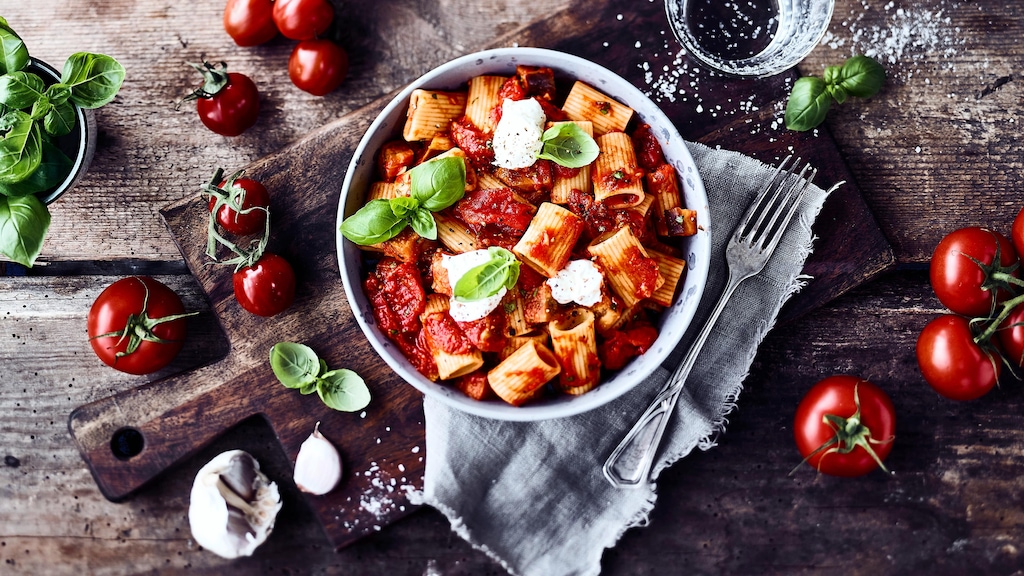 Pasta bringt Sie ohne großen Aufwand mitten hinein in die italienische Gourmetküche. Auch ohne Spaghetti. Für unser Rezept für Pasta alla Norma nutzen Sie beispielsweise Rigatoni. Die kombinieren Sie ganz wie in Sizilien mit Tomaten, frischem Basilikum und Ricotta.